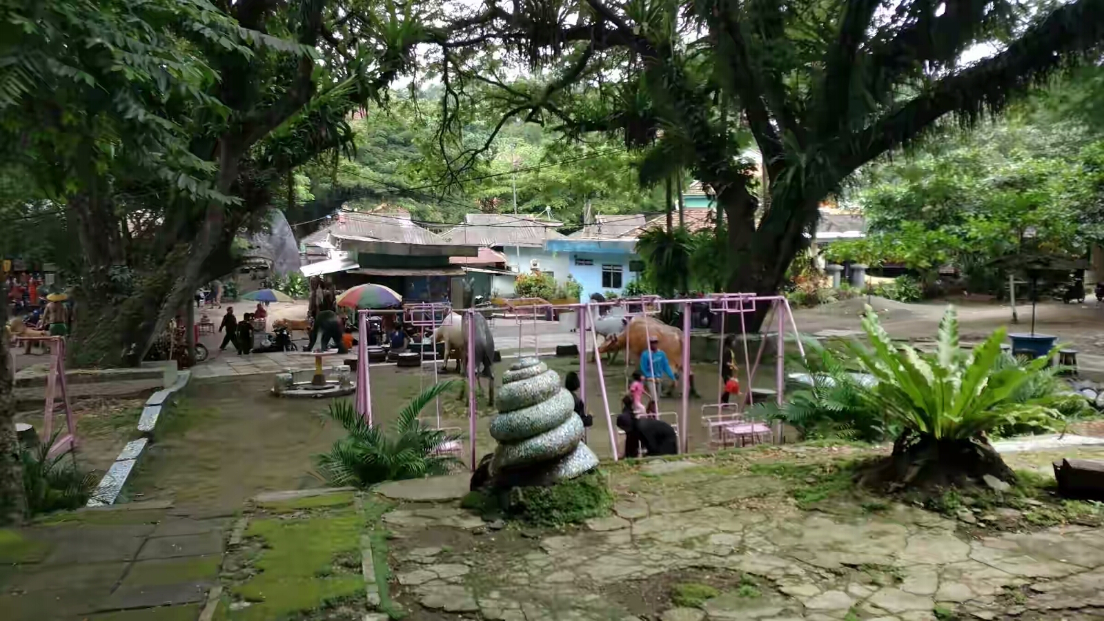 Here are also a lot of animal sculptures which are usually widely used to take photos or ride on children. The statues were deliberately made so that visitors can feel like in nature and forget for a moment their world.